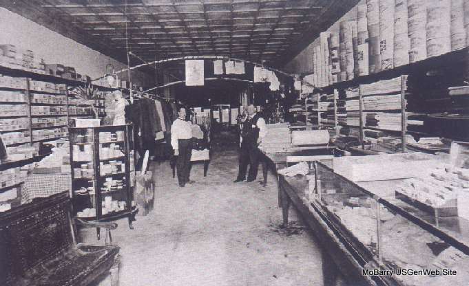 SSW: Arthur L. and Nancy C. - Research Note: He was widowed twice and a hardware merchant. Death year on the death certificate is 1944. Son of Arthur Long Kersey born TN and Nancy Caroline Hinton born GA. He first married May Susie Ballard, second Lillie Turner. - T. S. Kersey married Lillie Turner on Nov. 8, 1903 in Barry Co., MO. 1940 Census, Exeter, Barry, Missouri, age 75, divorced, living with his sister Maud Ellston and husband Charles N. Ellston. - Kersey Store in Exeter - This store sold anything you needed or wanted. In 1906 they also had a store for a few years in Cassville. Around 1927 the Exeter store burned, along with all the rest of the buildings in the commercial block, which were later rebuilt. On the left is Thomas Kersey. On the right is John D. Kersey, Grandfather of Pat Henry. | Family Photo Patricia Henry Death Certificate MO Marriage Records Census Phyllis Long Photo Fred and Neoma Sherman |