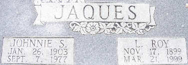 | JAQUES, Lee Roy | Nov. 17, 1899 | Mar. 21, 1999 | SSW: Johnnie S. - Research Note: He was a son of Daniel Samuel Jaques, born Switzerland, and Jane Sevenia Tyler, born MD. | Census Phyllis Long Photo Fred and Neoma Sherman |