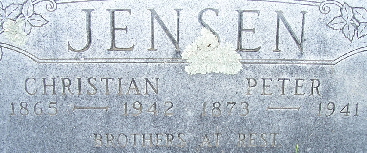 | JENSEN, Peter | 1873 | 1941 | SSW: Christian - Inscription: "Brothers at Rest" | Photo Fred and Neoma Sherman |