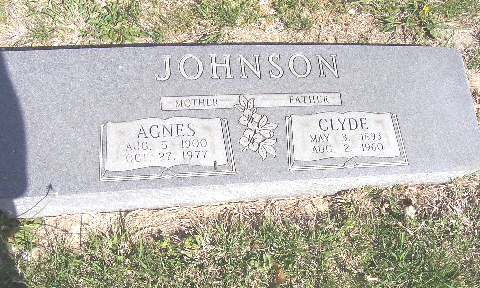 | JOHNSON, Agnes (BOX) | Aug. 5, 1900 | Oct. 27, 1977 | SSW: Sim Clyde - Research Note: Daughter of John Wesley Box and Rachel Birdie Bowman. Agnes Box, age 25 from Wayne, Barry Co., MO, married Clyde Johnson, age 30 from Heber Springs Cleburne Co., AR, on Aug. 8, 1924 in Cleburne Co. AR. | Census AR Marriage Index Phyllis Long Photo Fred and Neoma Sherman |