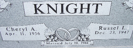 | KNIGHT, Russel L. | Dec. 23, 1947 | No Date | SSW: Cheryl A. - Inscription: "Married July 10, 1984" | Photo Fred and Neoma Sherman |