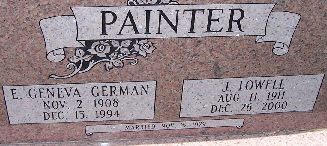 Research Note: He was the son of John Jackson Painter and Carrie (Noe) Painter. Married Leona Esther Laney, a daughter of Robert Calvin "Bob" Laney and Laura (Danley) Laney. John Painter was the informant on the death certificate. - Photo of Carl and Esther | Note Beverly Matthews Death Certificate Phyllis Long Photo Fred and Neoma Sherman |