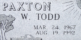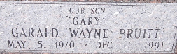 | PRUITT, Garald "Gary" Wayne | May 5, 1970 | Dec. 1, 1991 | Inscription: "Our Son Gary" | Photo Fred and Neoma Sherman |