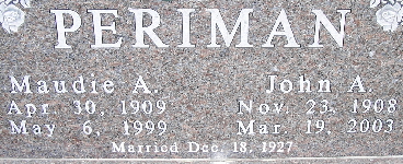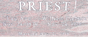 | PRIEST, Lou Ann (PERIMAN) | Nov. 24, 1936 | No Date | SSW: William Cleburn - Inscription: "Married Nov. 21, 1956" | Photo Fred and Neoma Sherman |