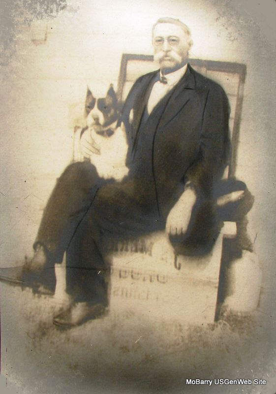 SSW: Nancy E. - Research Note: He was a druggist and his wife was named Lizzie. He was the son of John Pilant according to the DC, mother not known. Marshall Hankins of Cassville, MO was the informant on the death certificate. - Notes from Loretta Pilant Vincent: John was born in GA, the first and only child of Henderson Lewis Pilant and Harriet Bowels. Harriett died about 1848. Mrs. Lizzie (Nancy Erwin) Pilant (1864-1949) was the 3rd wife of J. F. Pilant. - Cassville Democrat or Republican - January 1933 - J. F. "Frank" Pilant, old time and well known citizen of Exeter, passed away at his home at that place Sunday morning, Jan. 1, 1933, aged 86 years 2 months and 1 day. This high standing character was born in TN, Oct. 8, 1846. His mother died when he was but two years old after which time he moved with his father to TX. He came to Barry County over 45 years ago and engaged in the drug business in Exeter for 42 years, retiring a few years ago on account of declining health. He had been married three times, his last wife being Nancy Erwin who passed on following paralytic stroke a short time ago. (See note below) He was a member of the Masonic and Odd Fellow lodges and had many friends throughout Barry County. He served as Public Administrator of the county several years. He leaves two half brothers, Alfred of Portland, OR, Albert of Exeter and one half sister Mrs. W. S. Hankins (Margaret Anna) of near Oak Ridge, who gave him the best of care in his closing days - Notes from Loretta Pilant Vincent: His DC #121 gives his name as being John Franklin which is incorrect. "Fernando" is the correct name. Information is from family records. His wife Nancy is listed as having died before him but according to her DC # 3974 She died, Jan. 21, 1949. Her headstone has 1949. Maybe if she had a stroke she was being cared for at another location. I don't have any records on this. His first wife was Irene R. Pilant, second wife Manerva Ann (Edwards) Pilant, both buried at Pilant Cemetery. Also an infant born July 18, 1884, died Aug. 29, 1884. Manerva died Aug. 7, 1884. - 1895 Cassville Republican Historic Edition, Page 27 - J. F. Pilant, Pub. Admr., of Exeter, was born in Lincoln Co., TN, Oct, 8, 1846. In 1850 his parents moved to TX where he attended the Sulpher academy three years and played cowboy near Sherman. In 1862 he was ordered to Sherman to join the Confederate forces, but not liking the hanging of two or three hundred of their best citizens he left for Springfield, MO, which he reached with $1.50. Through the influence of Wild Bill he got the contract to take 130 head of government horses to Kidder and made a nice sum. After returning to Springfield he clerked in mercantile businesses for different ones there and elsewhere until 1877 when he came to Barry County and engaged in the drug business with Dr. Speece. This business he has followed, alternately with farming, since, and now engages his attention outside of his office. Jan. 30, 1892, and again Nov. 5, 1892, he was burned out, losing heavily each time. In 1892 Mr. Pilant was elected public administrator on the Republican ticket and is candidate for re-election. - Pilant Family Photo - Photo of John and Lizzie - Photo of John and his dog Rosco | Death Certificate Phyllis Long Obit Loretta Pilant Vincent Photo Fred and Neoma Sherman |