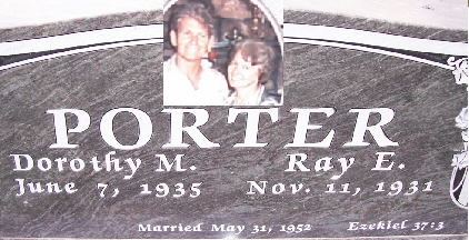 SSW: Dorothy M. - Inscription: "Married May 31, 1952" - Research Note: He was the son of Sam and Bea (Johnson) Porter. On May 31, 1952, he was united in marriage to Dorothy Hargus. Preceding him in death were his parents and one brother, Jimmy Porter. Ray grew up and received his education at Washburn, graduating from Southwest High School. During the Korean War he entered the United States Army, serving from July 8, 1952 until July 7, 1954. Most of his life was spent as a carpenter, except for four years when he worked for U.S. Shoe and Justin Boot. Ray served on the Washburn Road District and was a school board member for twelve years. | Fohn Funeral Home Phyllis Long Photo Fred and Neoma Sherman |