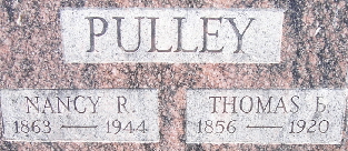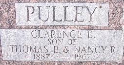 | PULLEY, Clarence Edwin | 1887 | 1967 | Inscription: "Son of Thomas B. and Nancy R." - Research Note: He was the son of Thomas Benton Pulley and Nancy Rosana Russell. | Census Phyllis Long Photo Fred and Neoma Sherman |