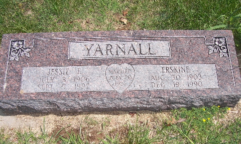 | YARNALL, Erskine | Aug. 30, 1903 | Dec. 19, 1990 | SSW: Jessie L. - Research Note: He was the son of Thomas B. Yarnall and Abigail McClure. Erskine Yarnall, age 22, of Chicago, IL, married Jessie House, age 21, of Exeter, MO, on July 20, 1926 in Carroll Co., AR. | Census AR Marriage Index Phyllis Long Photo Fred and Neoma Sherman |