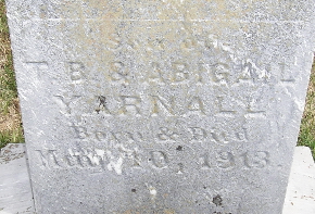 Inscription: "Son of T. B. and Abigail" - Research Note: He was born premature and was a son of T. B. Yarnall, born IL and Abigail McClure, born Exeter, MO. His death certificate reads that he was buried at Cassville, but he has a stone at Maplewood. | Death Certificate Phyllis Long Photo Fred and Neoma Sherman |