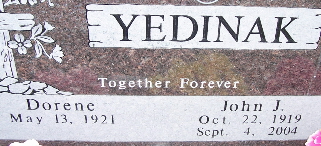 | YEDINAK, Dorene Gladys (WHITE) (LYNCH) | May 13, 1921 Mound City, Holt Co., MO |