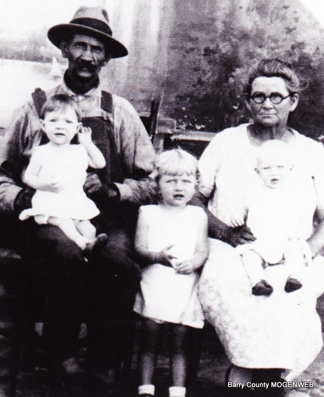 SSW: Abigail - Research Note: His wife was Abigail, age 67 when he died. Son of John Slack Yarnall and Rebecca Miranda Hawk. Erskin Yarnall of Cassville, MO was the informant on the death certificate. Cause of death was MS. - September 12, 1908, Saturday, Cassville Democrat - Thomas B. Yarnall of Flat Creek Township, near Cassville, was born Oct. 7, 1871 in Wayne County, Ill., and left that state when eight years old and went to Phillips County, Kan., and resided in that state 8 years and in 1867, he came to Barry county and located in Liberty Township, and has resided in this county ever since, excepting 16 months, which he spent in North Dakota. On Dec. 24, 1893, he and Miss Abigail McClure, only child of Thomas McClure, were married, and they have three children - two boys and a girl. He is a farmer and a breeder of fine stock. He is a member of the Missionary Baptist Church and a Democrat in politics. - Cassville Republican, Nov. 13, 1919 - Otto Yarnall has moved to the T. B. Yarnall farm out on the Cassville and Monett road. T. B. Yarnall has moved to Exeter for the present to assume personal management of the Farmer's Exchange at that place. - Cassville Republican, Thursday, Nov. 21, 1918 - Charles Curry of Eagle Rock was here Tuesday after one of those fine registered Hereford male calves of T. B. Yarnall's. - Cassville Democrat, March 6, 1920 - T. B. Yarnall has moved back to his farm from Exeter on account of the death of his son's wife. - Cassville Democrat, Sept. 18, 1920 - T. B. Yarnall wants to hire a good married man to work on the farm. Will furnish good house and cow to milk. Work every day if satisfactory. Will rent land for crop next year. I can use man with boys. Work for two to four hands. Apply at once. | Death Certificate Census Online Newspapers Phyllis Long Photo Fred and Neoma Sherman |