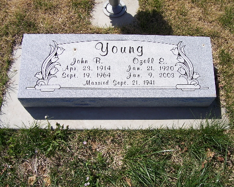 SSW: Ozell - Inscription: "Married Sept. 21, 1941" - Research Note: He was the son of Charles Valentine Young and Ida Mae Main. He was a truck driver and usual residence was Independence, Jackson Co., MO. | Parents Joyce Boeh Death Certificate Census Phyllis Long Photo Fred and Neoma Sherman |