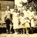 Back row, l to r: Other Lee Purcell (1892-1971); son Hearl Eugene Purcell (1914-1989); wife Velma Edna Butcher Purcell (1895-1963), daughter Mabel Edna Purcell McFarland (1912-1996). Front row, l to r: daughter Norma Eileen Purcell Johnson (1921-1994); daughter Helen Marie Purcell Beavers (living) and daughter Hazel Edith Purcell Ray (living). Taken about 1932 at home place on Washburn Prairie. Submitted in 1999 by: Megan Zurawicz. |