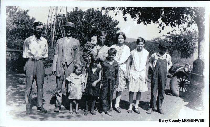 Descendants of John James Payton 1 John James Payton b: Jan 19, 1886 in Pineville, McDonald Co., MO d: Feb 23, 1969 in Stella, Newton Co., MO Burial: Union Cemetery, McDonald County, MO +Dovey Louise Bailey aka: Dovie b: Feb 23, 1891 in Berryville, Carroll Co., AR m: Dec 13, 1907 in AR? d: Apr 19, 1973 in Gravette Medical Center, Benton Co., AR Burial: Apr 1973 Union Cemetery, McDonald County, MO 2 Charles Everett Payton b: Mar 24, 1909 in Pineville, McDonald Co., MO d: Jul 31, 1971 in Cardwell Medical, McDonald Co., MO Burial: Peace Valley, Anderson, McDonald Co., MO +Eva Lee Garner b: Oct 13, 1900 in Eagle Rock, Barry Co., MO d: May 29, 1970 in Mt Vernon, Lawrence Co., MO Burial: Horner Cemetery, Barry Co., MO 2 Golda Melinda Payton b: Mar 15, 1910 in McDonald Co., MO +Bill Raines *2nd Husband of Golda Melinda Payton: +Roscoe A. Smith b: Apr 12, 1891 in Britton, Michigan m: Jul 21, 1938 d: Jun 11, 1977 2 Daisy Mae Payton b: Jun 17, 1912 in Sulphur Springs, Benton Co., AR d: Jul 06, 1982 in San Luis Obispo - Paradise, Butte, CA +Robert Wells b: Feb 23, 1908 in Camp Howze m: 1931 *2nd Husband of Daisy Mae Payton: +Keith A. Neeper b: Abt. 1912 m: Oct 11, 1947 2 Johnnie James Payton b: Nov 17, 1913 in Sulphur Springs, Benton Co., AR d: Aug 1980 in Exeter, Barry Co., MO +Muriel Robbins b: Jan 13, 1918 in Cassville, Barry Co., MO m: Jun 23, 1936 in Barry Co., MO d: Aug 08, 1971 in Barry Co., MO *2nd Wife of Johnnie James Payton: +Louise b: Dec 05, 1906 m: Aft. 1980 d: Feb 10, 2004 in Barry Co., MO 2 Harold Vernard Payton b: Apr 28, 1918 in Seneca, Newton Co., MO d: Nov 1948 in World War II, Europe 2 Dovey Louise Payton b: Jul 11, 1920 in Seneca, Newton Co., MO d: Apr 13, 1970 +Brown 2 Jewell Trixie Payton b: Nov 06, 1923 in Hinton, Canadian Co., OK +Clyde Johnson b: Abt. 1923 m: Feb 10, 1940 in McDonald Co., MO 2 Raymond Clarence Payton b: Jun 09, 1925 in Hinton, Canadian Co., OK d: 1928 2 Eugene Cecil Payton b: Nov 09, 1928 in Hinton, Canadian Co., OK d: Aug 05, 2000 in Belleville, Wayne, MI 2 Carl Alivin Payton b: Sep 02, 1930 in Hinton, Caddo Co., OK d: Jul 14, 1997 in St. John's Hospital, Joplin, Jasper Co., MO +Ellen Lancaster b: Abt. 1930 m: Apr 11, 1949 in Bentonville, Benton Co., AR d: Aft. 1997 2 Sylvia Marie Payton b: Jun 13, 1933 in Pineville, McDonald Co., MO d: Aft. 1997 +William Dewitt Thompson b: Abt. 1923 m: Oct 28, 1947 in McDonald Co., MO Photo submitted by Marie Windham Chart submitted by Donna Cooper |
