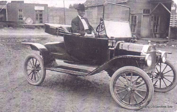 Dr. Searcy an Exeter Doctor of Barry County, Missouri and taken in the early 1900s. He was the family doctor for the the John Kersey family. In the upper left corner is the Produce Company. To the right, behind the car, is the Post Office. Submitted by Pat Henry |