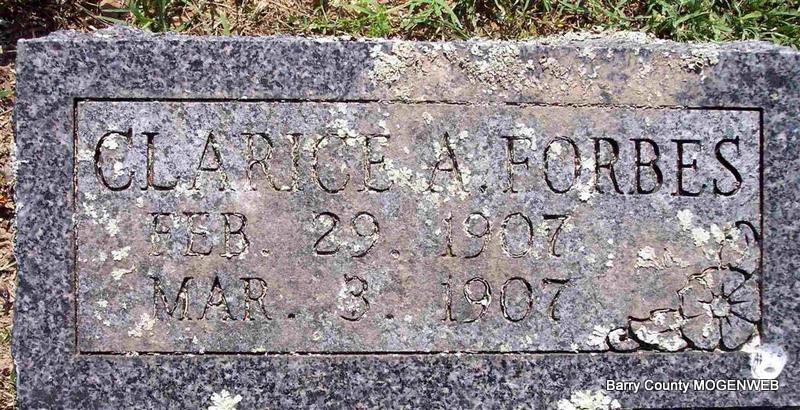 | FORBES, Clarice A. | Feb. 29, 1907 | Mar. 3, 1907 | Research Note: Daughter of Volney Jerome Forbes and Katherine Frances Gosser. 1910 census, Katherine was the mother of 4 children, 1 living. | Census Phyllis Long Photo Diana Cope |
