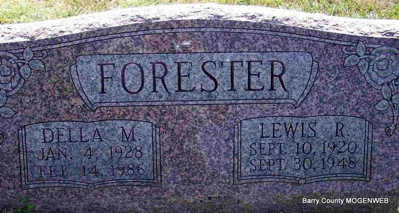| FORESTER, Della M. | Jan. 4, 1928 | Feb. 14, 1986 | SSW: Lewis R. | Photo Diana Cope |