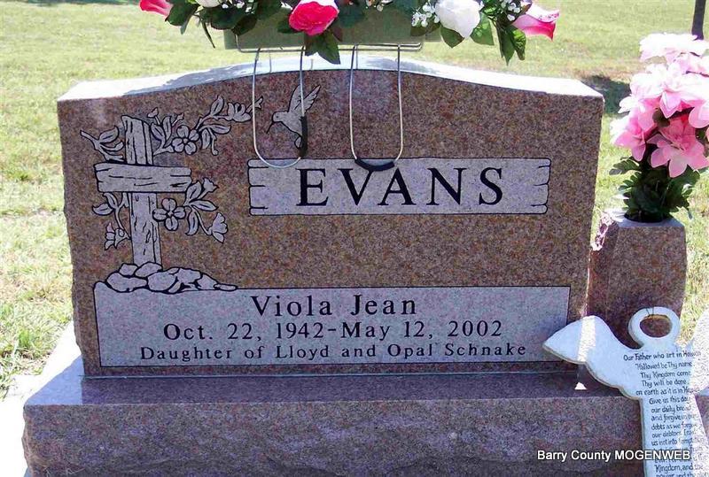 | EVANS, Viola Jean (SCHNAKE) | Oct. 22, 1942 Lawrence Co., MO |