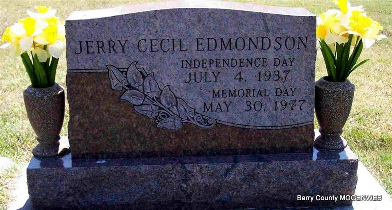 | EDMONDSON, Jerry Cecil | July 4, 1937 | May 30, 1977 | Inscription: "Independence Day July 4, 1937 - Memorial Day May 30, 1977" - Research Note: Son of William Cecil Edmondson and Goldie Emma Lasiter. | Census Phyllis Long Photo Diana Cope |
