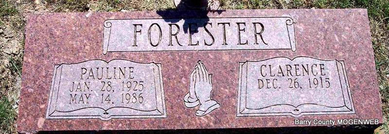 | FORESTER, Clarence | Dec. 26, 1915 | No Date | SSW: Pauline - Research Note: Son of Fines Daniel Forester and Mary Frances Elizabeth "Lizzie" McCaslin. | Census Phyllis Long Photo Diana Cope |