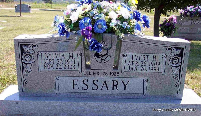 | ESSARY, Evert H. | Apr. 26, 1909 | Jan. 26, 1994 | SSW: Sylvia M. - Inscription: "Married Aug. 28, 1928" - Research Note: Son of James Henry Essary and Aggie Akers. | Brother's Obit Phyllis Long Photo Diana Cope |