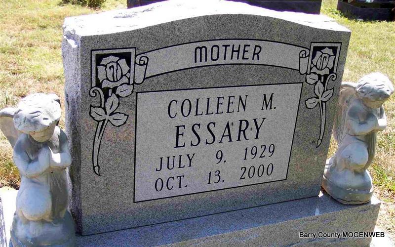 | ESSARY, Colleen Marie (GENTRY) | July 9, 1929 | Oct. 13, 2000 | Inscription: "Mother" - Research Note: Wife of Dewey John. Daughter of Willie and Mae Gentry. - Back of Stone | Census Phyllis Long Photo Diana Cope |