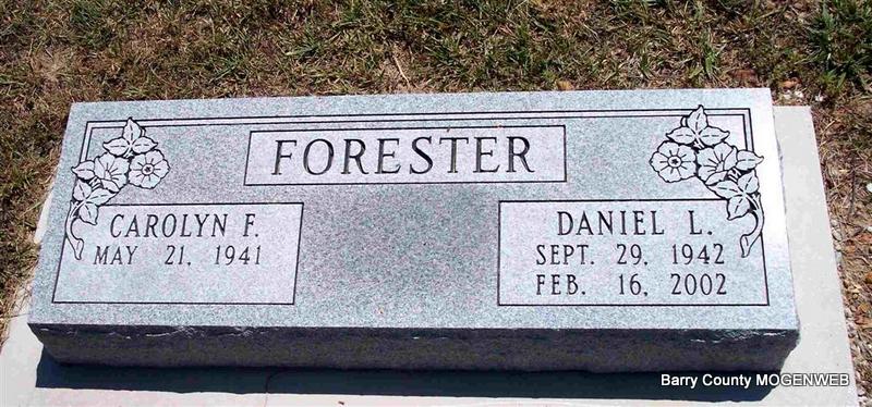 | FORESTER, Daniel Lee | Sept. 29, 1942 | Feb. 16, 2002 | SSW: Carolyn F. - Research Note: He first married Nancy Jane Carnes on June 8, 1967 and she died on Sept. 27, 1967. He second married Carolyn Faye Foster. | Note Phyllis Long Photo Diana Cope |