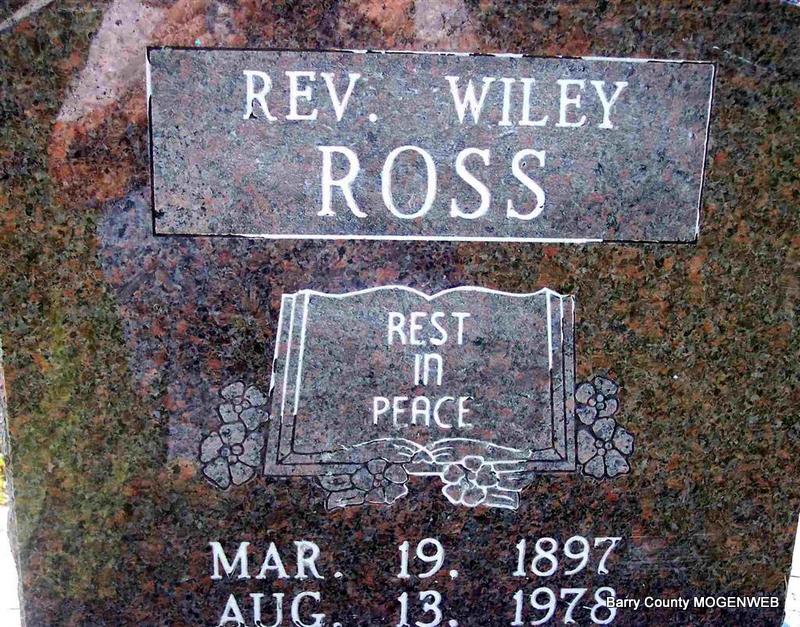 | ROSS, Wiley, Rev. | Mar. 19, 1897 | Aug. 13, 1978 | Inscription: "Rest in Peace" - Research Note: Son of James Skinner Ross and Mary Downs. His wife was Ada Sikes. | Census Phyllis Long Photo Diana Cope |