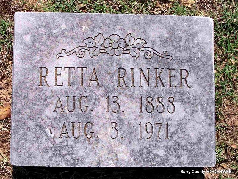| RINKER, Retta Martha (STEVISON) | Aug. 13, 1888 MO |