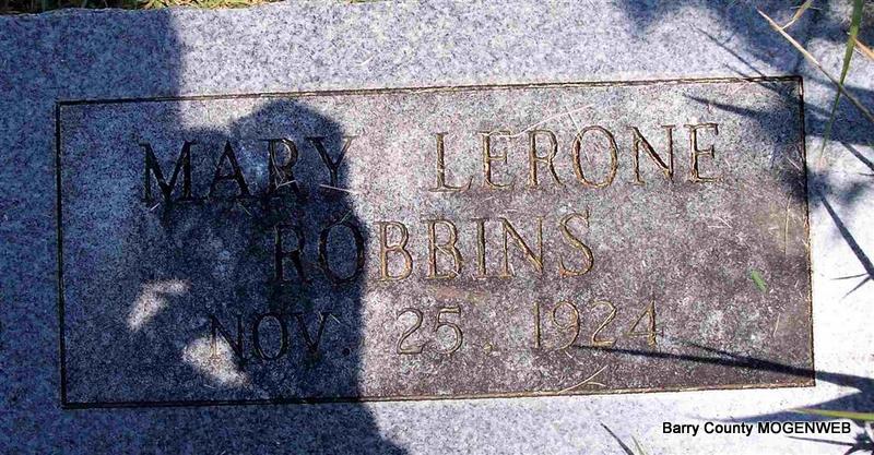 | ROBBINS, Mary Lerone | No Date | Nov. 25, 1924 | Research Note: Stone has one date, could be a birth date or an infant that was born and died the same day. | Photo Diana Cope |