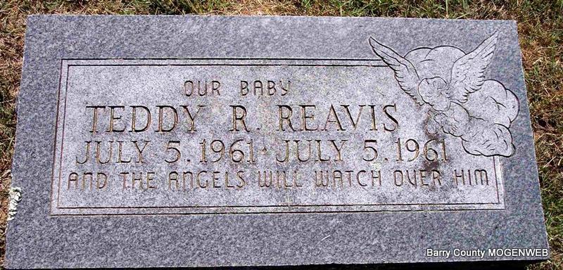 | REAVIS, Teddy R. | July 5, 1961 | July 5, 1961 | Inscription: "Our Baby - And The Angels Will Look Over Him" - Research Note: Son of Teddy Wade Reavis and Icy Jane Cook. | Note Phyllis Long Photo Diana Cope |