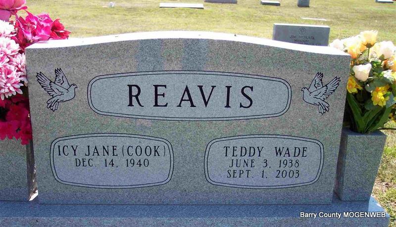 SSW: Icy Jane Cook - Research Note: Mr. Reavis was a retired business owner. Son of Loren Elmer Reavis and Thelma N. McCullouogh. - Back of Stone | Peterson Funeral Home Census Phyllis Long Photo Diana Cope |