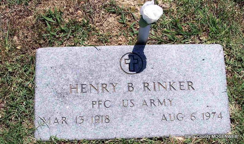 | RINKER, Henry B. | Mar. 13, 1918 | Aug. 6, 1974 | Inscription: "PFC US ARMY" | Photo Diana Cope |
