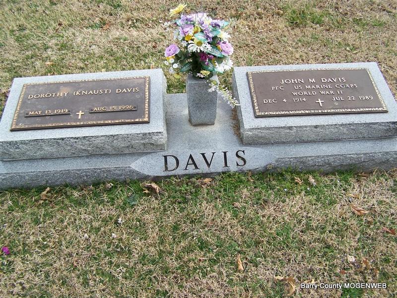 SSW: John M. - Research Note: Daughter of Ludwig C. Knaust and Eda L. Witt. John M. Davis married Dorothy Knaust on Apr. 17, 1938 in Joplin, Jasper Co., MO. | Photo Don Warner SS Claims Index Phyllis Long MO Marriage Records Phyllis Long |