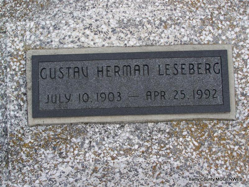 Research Note: Son of Gustav Leseberg and Alwine Gemlke. Buried next to Ella Leseberg, his wife. | Photo Don Warner Census Phyllis Long |