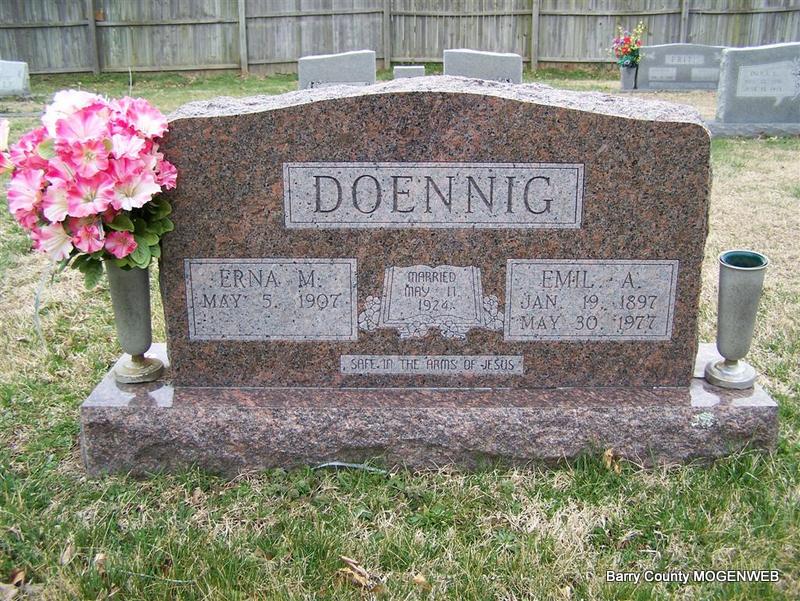 | DOENNIG, Erna M. Anna Sophia (OSTERLOH) | May 5, 1907 Freistatt, Lawrence Co, MO |