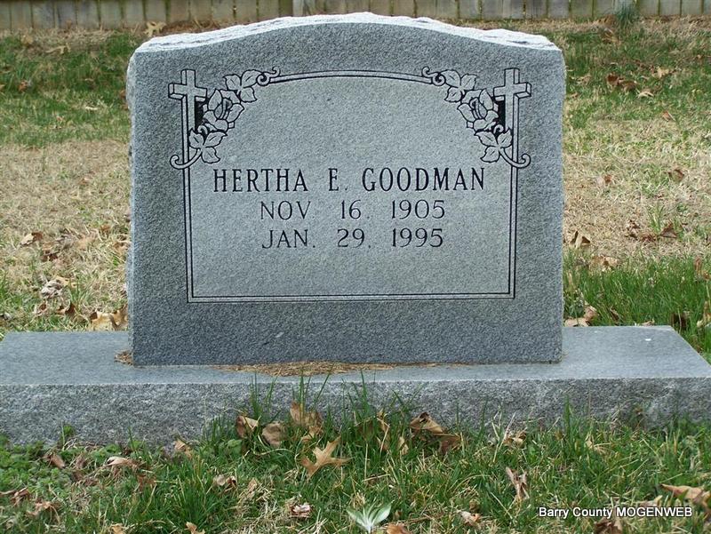 | GOODMAN, Hertha Elizabeth (FRITZ) | Nov. 16, 1905 Freistatt, Lawrence Co., MO |