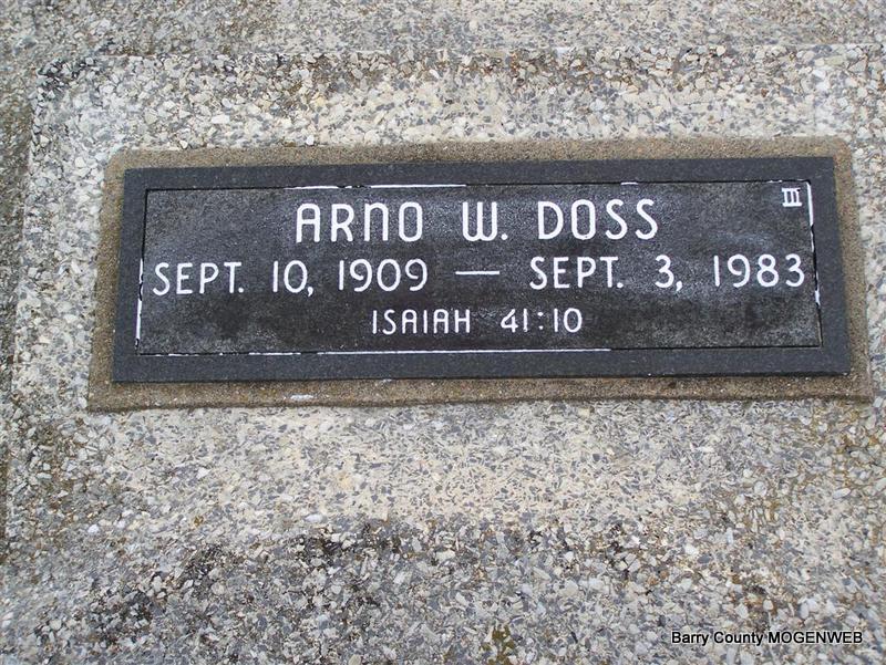 | DOSS, Arno W. | Sept. 10, 1909 Freistatt, Lawrence Co., MO |