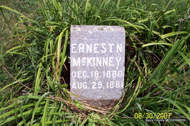 | MCKINNEY, Ernest N. | Dec. 18, 1880 | Aug. 29, 1881 | Research Note: Son of Edward M. McKinney and Alice Newton Hailey. | Note Phyllis Long Photo Diana Cope |