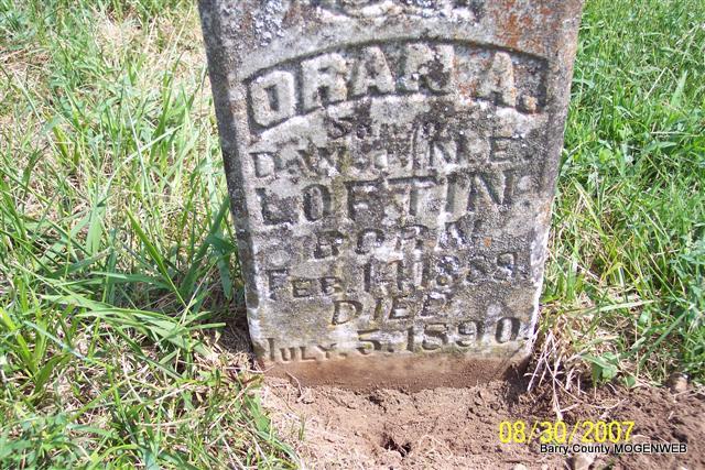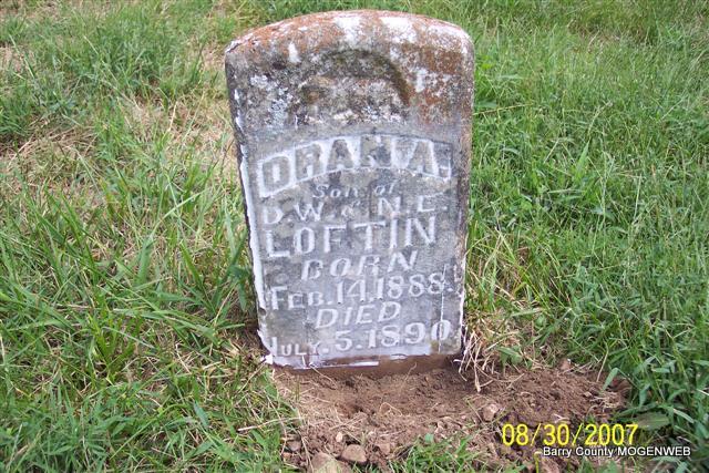 | LOFTIN, Oran A. | Feb. 14, 1888 | July 5, 1890 | Inscription: "Son of D. W. and N. E. Loftin" - Research Note: Son of David Wesley and Nancy E. Loftin, both buried at Mineral Springs cemetery. - Another Photo | Note Phyllis Long Headstone Lanny and Mary Photo Diana Cope |