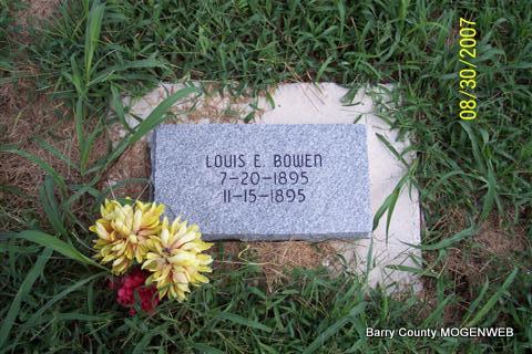 | BOWEN, Louis Elmer | July 20, 1895 | Nov. 15, 1895 | Research Note: Son of Thomas W. Bowen and Mary Caroline Hadley. | Note Phyllis Long Photo Diana Cope |
