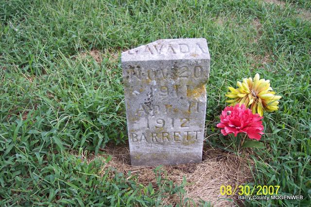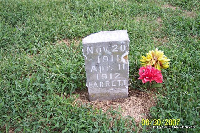 | BARRETT, Gavada Delento | Nov. 20, 1911 Cato, Barry Co., MO |