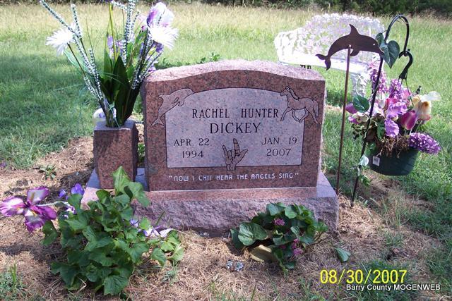 | DICKEY, Rachel Hunter | Apr. 22, 1994 | Jan. 19, 2007 | Inscription: "Now I can hear the Angles sing" - Research Note: Was missing from first transcription. - Back of Stone | Photo Diana Cope |