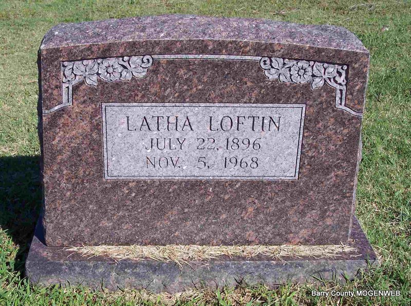 Research Note: Daughter of Morgan Pannell and Martha Elizabeth McKinney, both buried at Mineral Springs Cemetery. Wife of Grover Loftin. Divorced at the time of her death. Roland Meador of Cassville, MO was the informant on the death certificate. - June 15, 1916, Thursday, Cassville Republican - Licenses to Wed: Grover Loftin, 23, Mineral Spring and Latha Pannell, 20, Mineral Spring. | Headstone Norma Hayward Online Newspapers Census Death Certificate Phyllis Long Photo Diana Cope |
