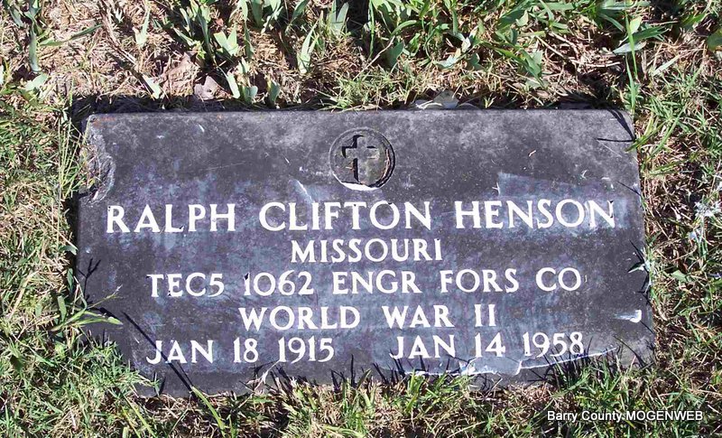 | KINSER, John Samuel | Aug. 12 , 1901 | Aug. 2, 1972 | Inscription: "MISSOURI M SGT US AIR FORCE WORLD WAR II" Research Note: Son of James Russell Kinser and Nettie E. Randall. He married Ruby Ada (Ennis) Stockton, buried at Mineral Springs Cemetery under Stockton. Her first husband, Clyde Stockton, died in 1959. | Headstone Norma Hayward Census Phyllis Long Photo Diana Cope |
