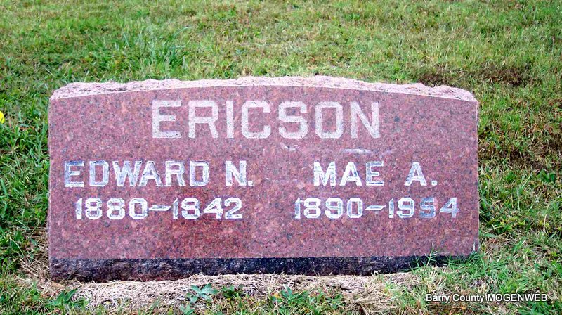 | ERICSON, Mae A. | 1890 | 1954 | SSW: Edward N. | Headstone Norma Hayward Note Phyllis Long Photo Diana Cope |