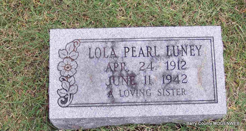 | LUNEY, Lola Pearl (EUBANKS) | Apr. 24, 1912 Barry Co., MO |