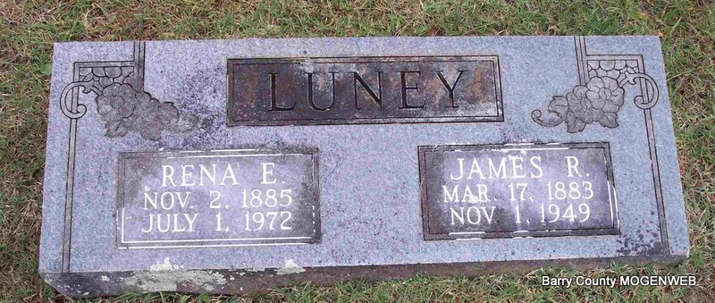 Research Note: Son of Peter Luney and Martha Corbin. His wife was Rena Hill and she was the informant on the death certificate. - January 8, 1914, Thursday, Cassville Republican - Willow Branch News: Thomas Luney visited his brother, Robert, last week. | Headstone Norma Hayward Death Certificate Donna Cooper Online Newspapers Phyllis Long Photo Diana Cope |