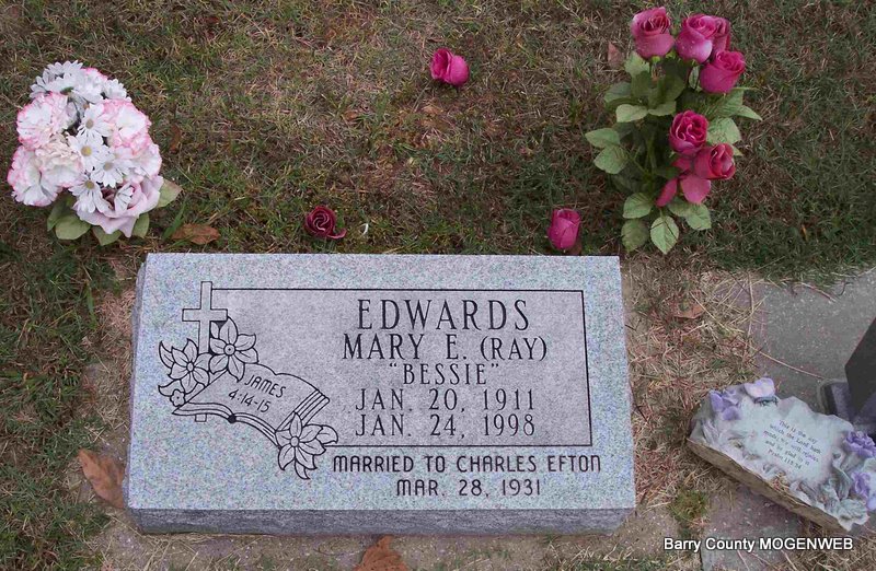 | EDWARDS, Mary Elizabeth "Bessie" (RAY) | Jan. 20, 1911 Cato, Barry Co., MO |