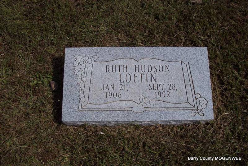 | LOFTIN, Ruth Ann (HUDSON) | Jan. 21, 1906 | Sept. 28, 1992 | Research Note: Daughter of Joseph Nunley Hudson and Ada Cora Maxwell. Wife of Mornie Loftin, divorced. - Another Photo | Headstone Norma Hayward Headstone Kevin Held Census Phyllis Long Photos Diana Cope |